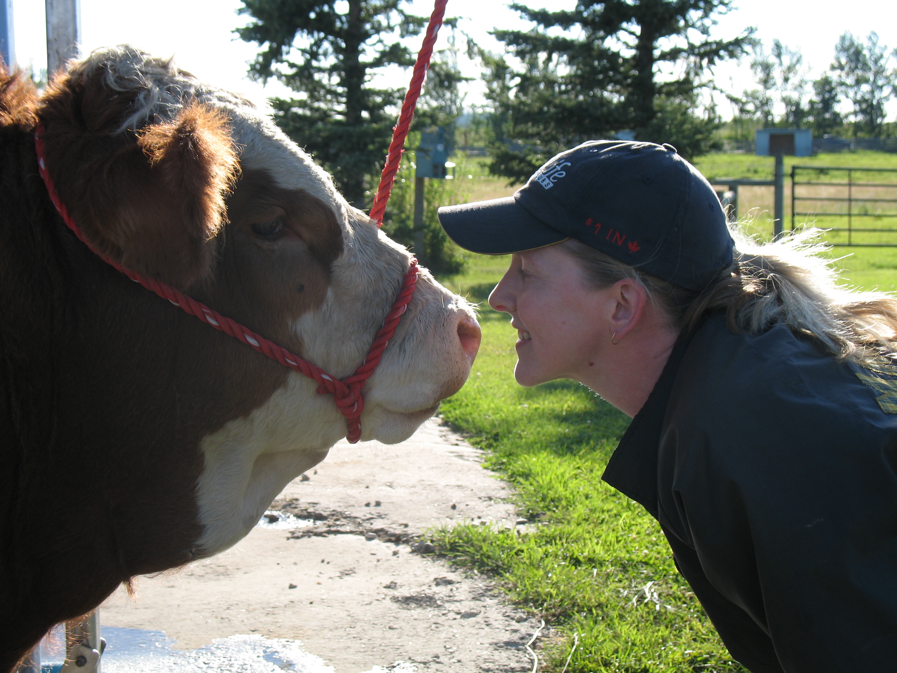 So, as we start on season two of the great halter break today, I thought it fitting to talk a bit about Jeanne and her efforts that go on behind the scenes; getting cattle ready. Applecross is a partnership in the truest sense of the word, and while we both have specific roles that we work best in, together we are definitely more than just the sum of our parts. Here is to Jeanne – nose to nose with an opportunity and desire to learn a new skill, taking that plunge, and then coming back for more in year two. It is always wonderful and astounding that she wants to be actively and enthusiastically involved in this crazy passion of mine called Fleckvieh cattle.