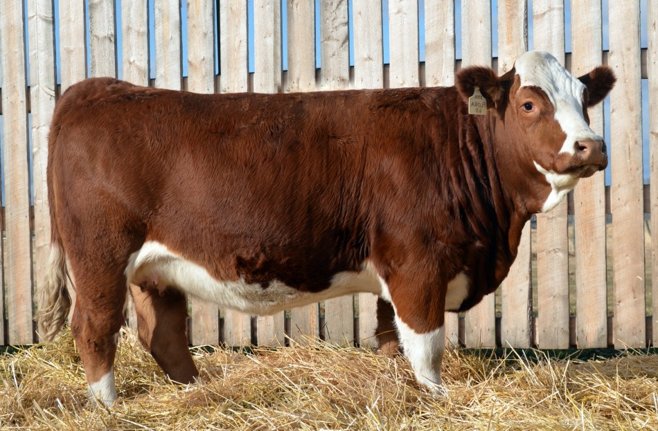 Full Fleckvieh. Heavily pigmented and dark cherry red, Flora combines the power of FGAF Windsurfer with the maternal strengths of JB CDN Hennessey. Flora’s dam, Anchor D Fergus, was our pick from the 2014 Pasture Treasures sale. We were drawn to her pedigree that stacks maternal strength in K2 Fergie, Kananaskis and RH Patricia, with the paternal power of Anchor “T” Legend, Jahari and Arni 8M to create a pretty cool young cow that we are really excited about. We have been very pleased with the consistency of the Hennessey offspring – his calves all arrive easily and his daughters combine lots of capacity with feminine front ends. Flora is
