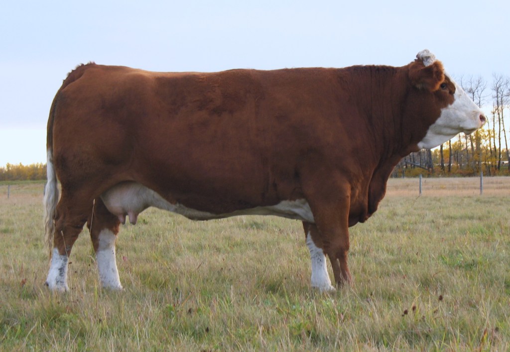 As shared in the footnotes, Tombstone is a bull we first saw during a summer pasture tour. Even as a six month old calf, he caught our eye. Early maturity, and a very strong ‘presence’, allowed us to track him from across the pasture. I have always thought that the best purebred cattle have a certain ‘je ne sais quoi’ (I don’t know what) about them, that is hard to describe. Stage presence. An “it’ factor. Eye Appeal. However you want to describe it, Tombstone certainly caught our attention, and became a target to acquire from the Beechinor bull sale. Through two calf crops, his calves are easy to pick out and his heifers, showcased by ‘Diva’ and ‘Dior’ also exhibit that incredible eye appeal.