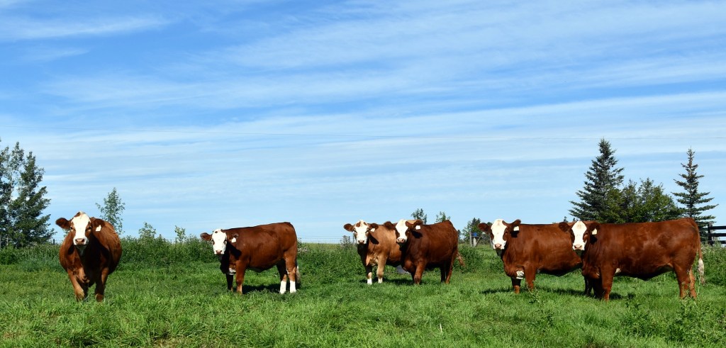 - We are very short moisture. We have lived here now for (almost) 20 years, and It is the driest we have ever seen it. For those that haven’t been to our place, we typically have 30 acres of sloughs across our half section – all of which are now dry. We ended last winters’ feeding cycle with only half a dozen hay bales remaining in our yard. We were fortunate in 2025 that there were enough timely rains through out the growing season that feed was plentiful in Central AB before the rain stopped again in early August. As a result, we did invest in additional feed for the current year, and while our herd numbers have held stable, we acquired an extra 20% over our typical feed stocks. Surplus feed allows me to sleep better in May – and also gives more flexibility in case the 2026 season continues a trend towards drought and grass becomes short. One thing farmers can’t control is when it rains. So feed is at the top of our list when it comes to peace of mind.