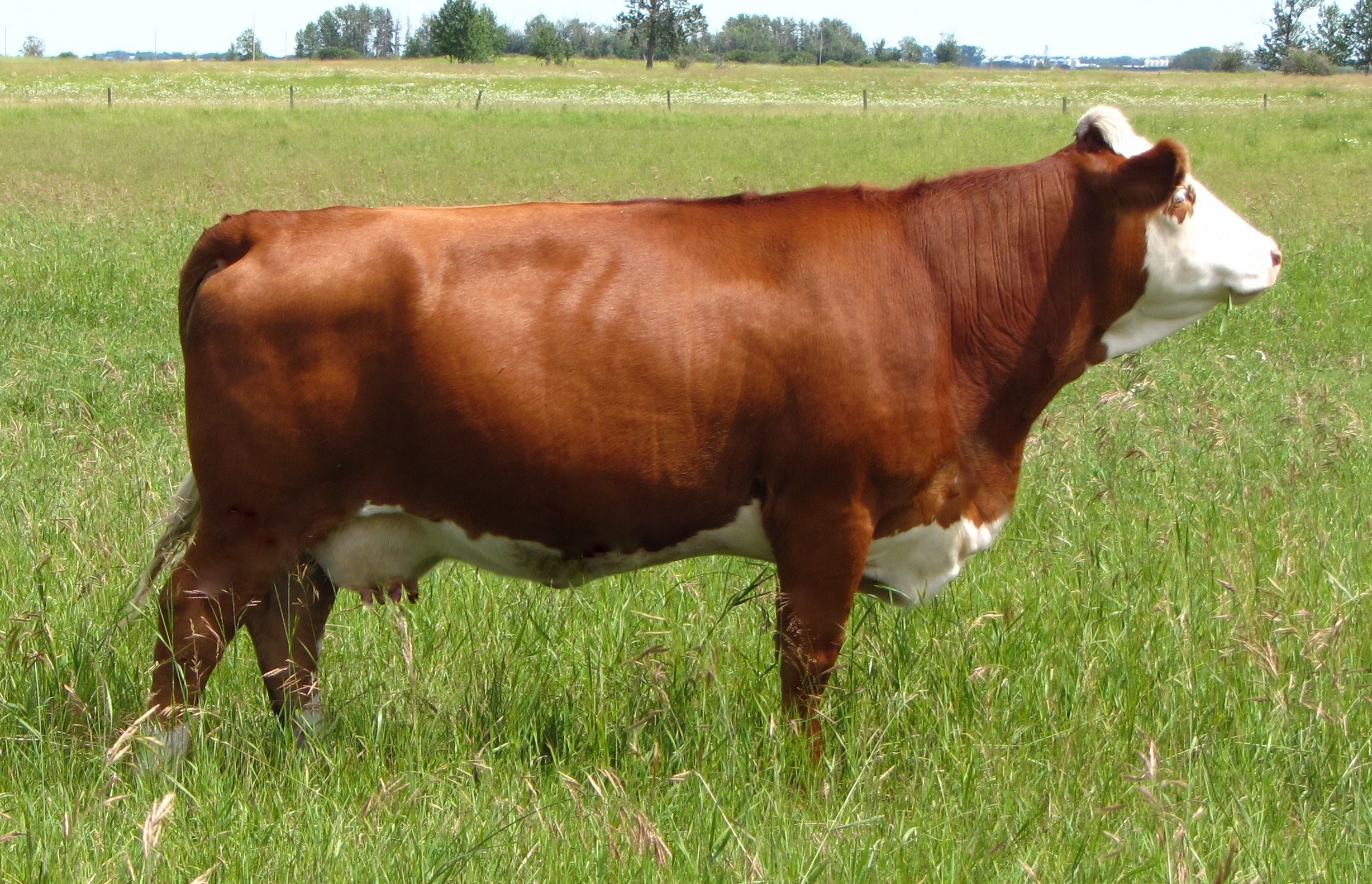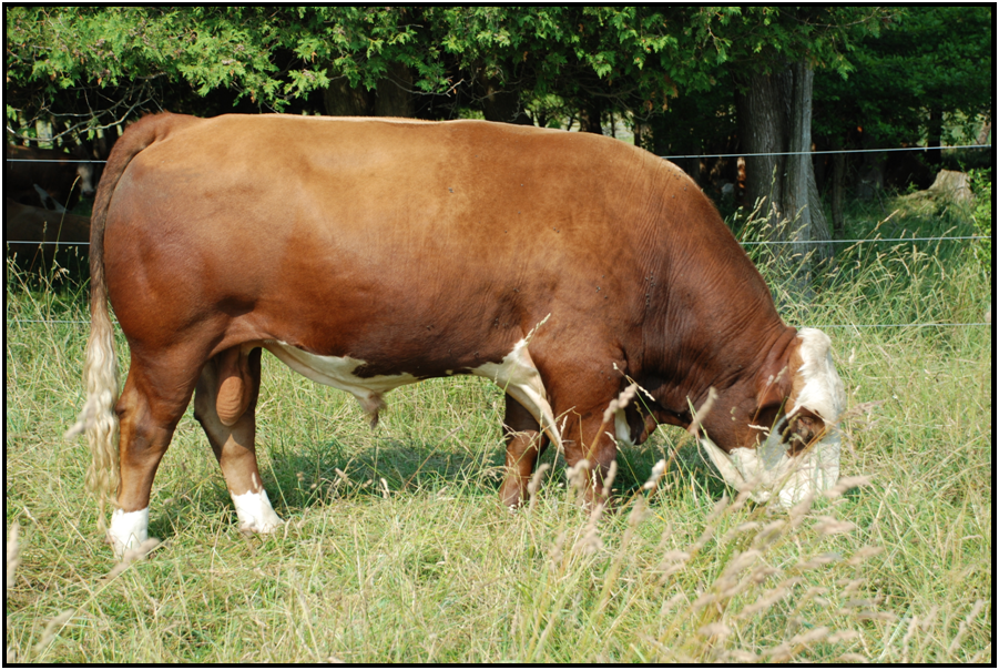 The result of years of development, Eclipse is the foundation polled bull from Dora Lee in Ontario. He provides calving ease while also producing powerful, coloured right offspring – a very rare combination. Eclipse is also proving to be one of the top Fleckvieh bulls for maternal calving traits, and is a maternal half sister to our own ‘Evangaline’ cow. Seven daughters averaged $3,400 in the 2010 Fleckvieh Forum Sale, and with semen selling to Europe, the US and across Canada, we feel Eclipse’s future will only get brighter. We have 3 direct daughters of Eclipse, and anticipate utilizing him in the future, specifically on heifers.