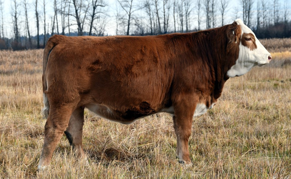 We thought it’d be pretty neat to showcase two genetic full siblings a year apart. One look at Delaney, and a second look across the page at Deirdre, will provide a great idea of what this genetic combination is all about. We have three full sibling ‘Anchor T Impact’ daughters in production, and they all put their calves in the keeper pens again this year, adding a little more frame and high end maternal capabilities. Soft and smooth made, Delaney is a heifer that exudes femininity, while packing a performance punch in what is certain to be unique breeding piece!