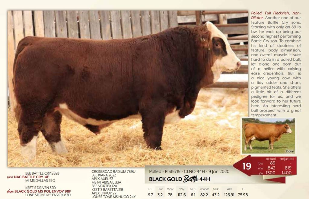 - Sire: Black Gold Battleborn 44H (NAC Battle Cry 4F)