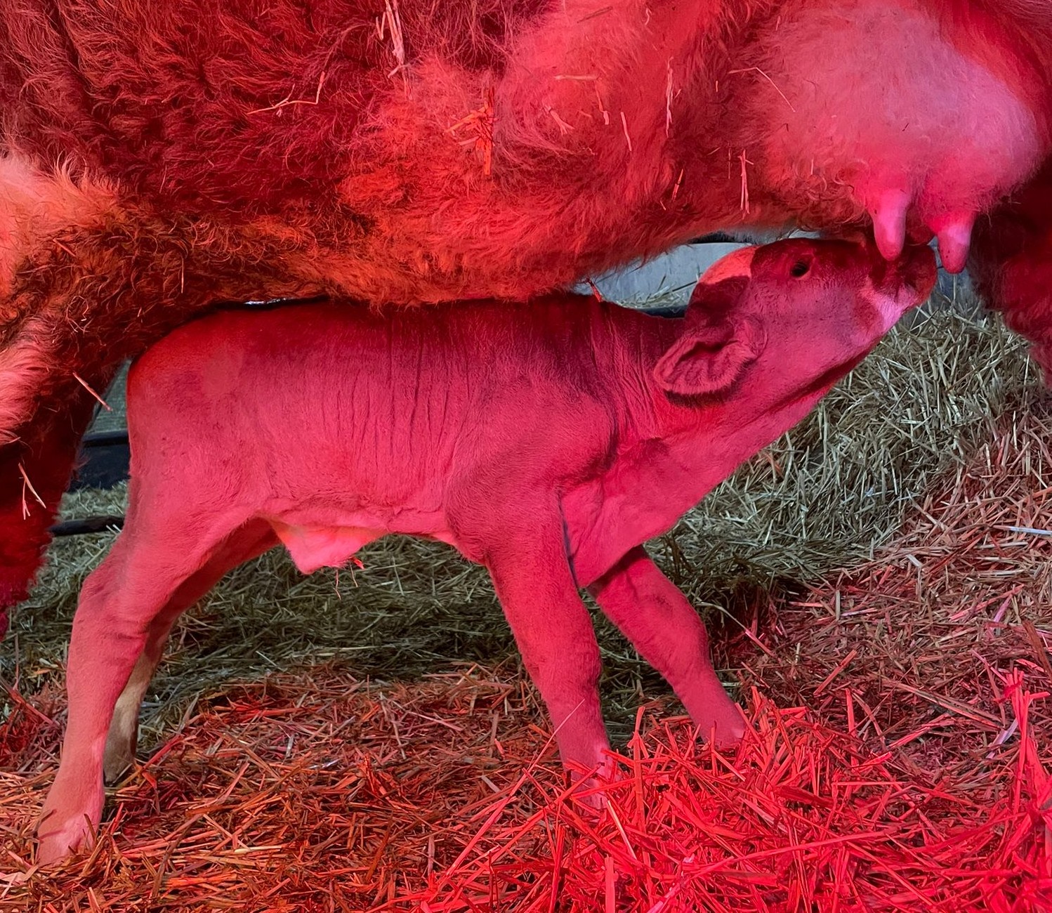 The next step was getting Paprika – as a first calf heifer – IN the barn, a place she hadn’t been since she herself was a newborn calf. In a normal scenario, prior to their due date, we train our first calf heifers to come in the barn a few times so they get comfortable being in over night (bribed with a little treat for their time). This process typically reduces stress at calving, as they are ‘more’ used to being in the barn and can focus on their new baby (which is a big enough change!) So again, with the Judas cow (knowing there was a treat involved), eventually we were able to coax the new mom into the barn to be re-united with her baby. We did ensure they had a fair bit of space. We didn’t want mom panicking and stepping on her calf – alone in a barn she had barely been in, that didn’t even ‘smell’ like cows yet this season. But we wanted them close enough together that they could start bonding. Certainly a tricky balance! And with that step complete, we took a break for a couple of hours (but could still check on them from the house via our cameras).